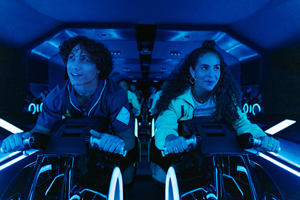 Blast off on a rip-roaring rocket into the furthest reaches of outer space on this roller-coaster ride in the dark.